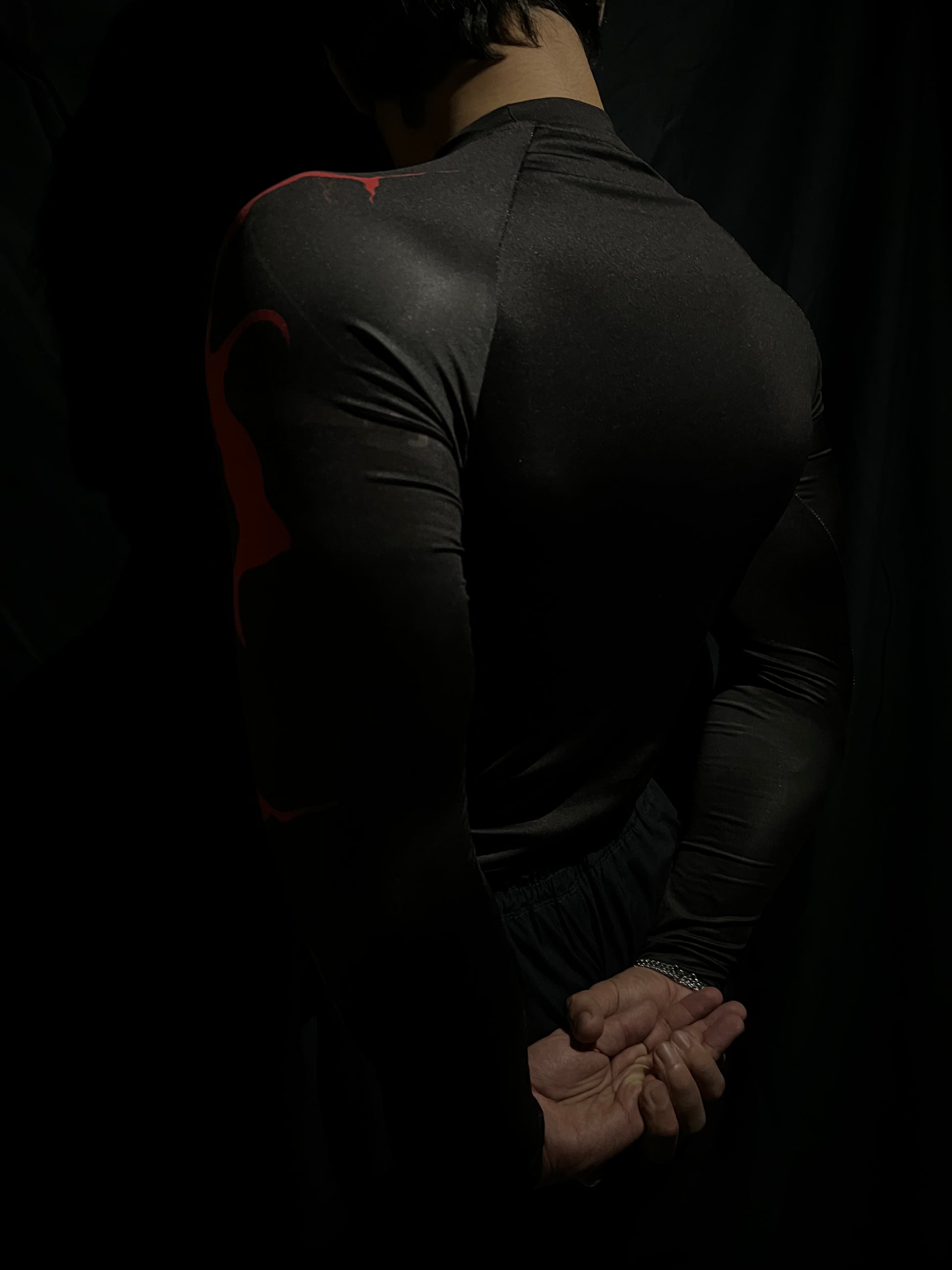 Inspired by the iconic New 52 Nightwing, this compression design channels the raw agility and fearless edge of a true vigilante. Featuring a bold red chest emblem that cuts across the torso and a striking full-arm graphic on the left sleeve, this piece is built to make a statement—both in the gym and on the field.